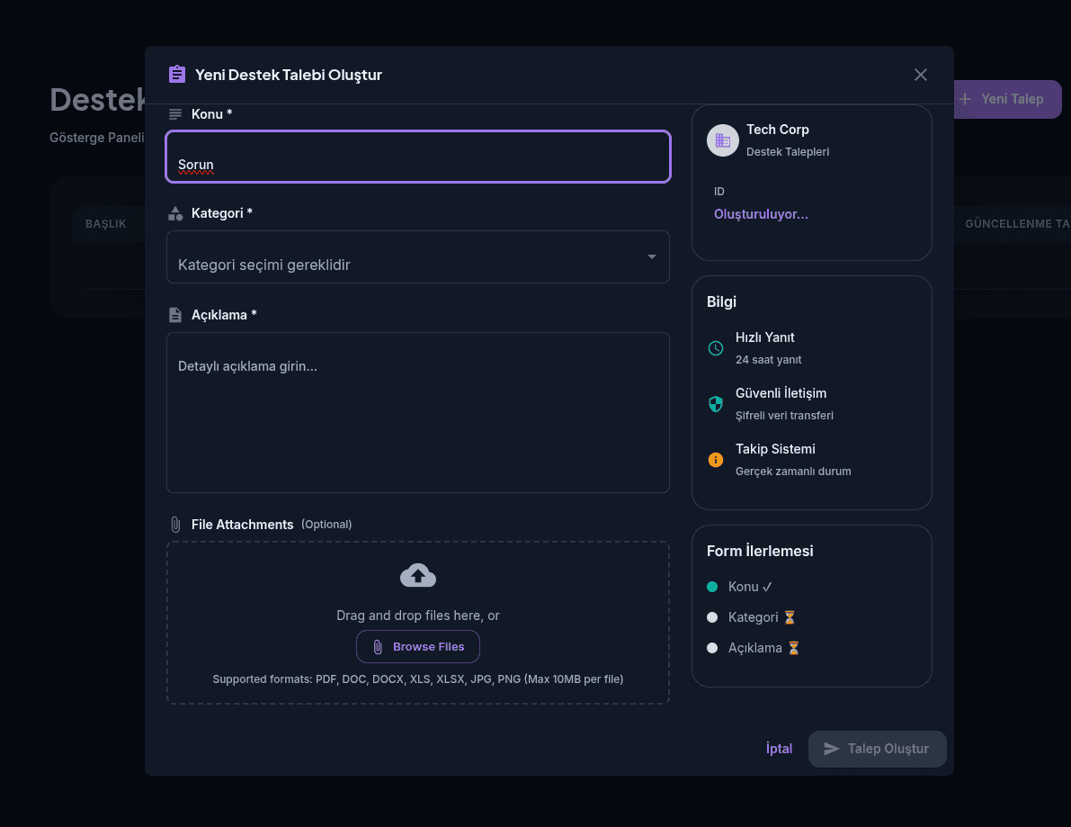Destek Bileti Sistemimiz, her çalışan talebini tek bir güçlü kontrol panelinde merkezileştirerek, dahili desteğinizi profesyonel bir verimlilikle yönetmek için gereken görünürlüğü ve kontrolü size sunar.